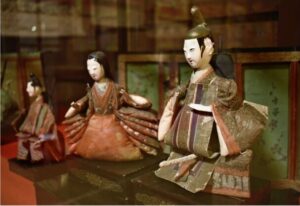 江戸の享保年間に流行した「享保雛」。はかまに綿を入れ膨らませている=南アルプス市西南湖