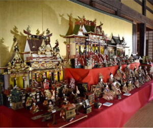 昭和30年代まで流行した御殿飾り雛。子どもが豊かに暮らせることを願って飾られたという=南アルプス市西南湖